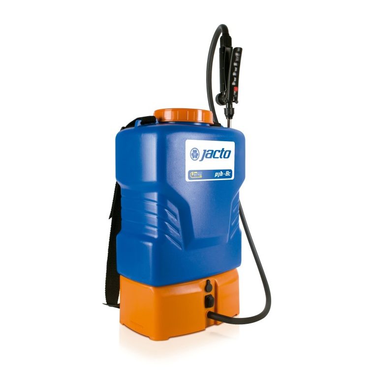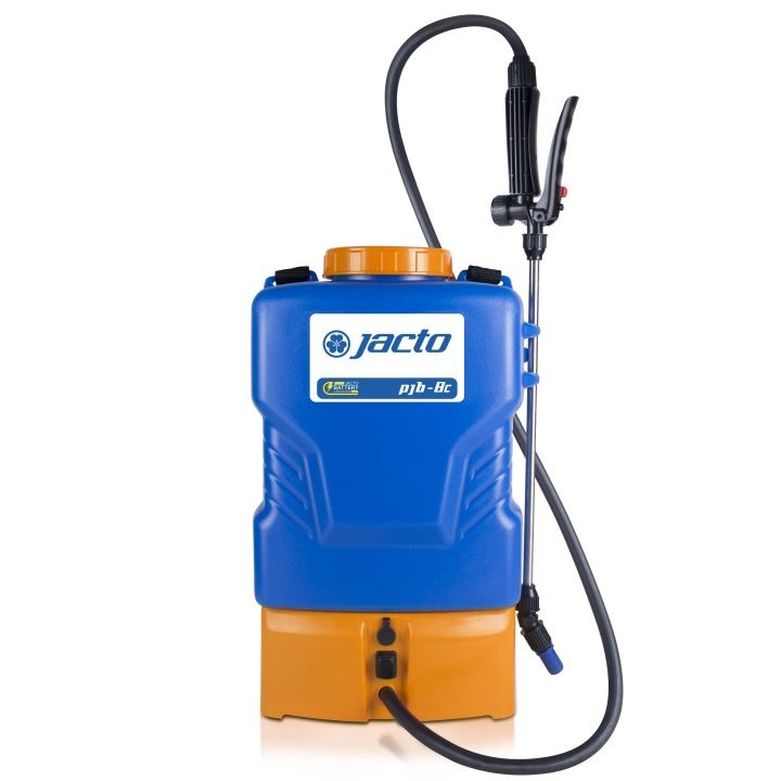 Jacto PJB-8C — профессиональный аккумуляторный опрыскиватель с баком 8 литров (2 gal) и стабильной подачей раствора от встроенной помпы. Модель комплектуется Li-Ion аккумулятором JB-1220 (10.8 V, 2.2 Ah / 20 Wh), диафрагменной помпой JEP-80, обеспечивает максимальное давление до 4,8 бар (70 psi), имеет короткую фиксированную штангу 350 мм и набор форсунок. Рекомендуемая площадь обработки зависит от нормы расхода (л/га), форсунок и условий работы и может варьироваться (на практике — от небольших участков до крупных площадей при соответствующих регламентах). Применять следует только одобренные сельскохозяйственные пестициды.
